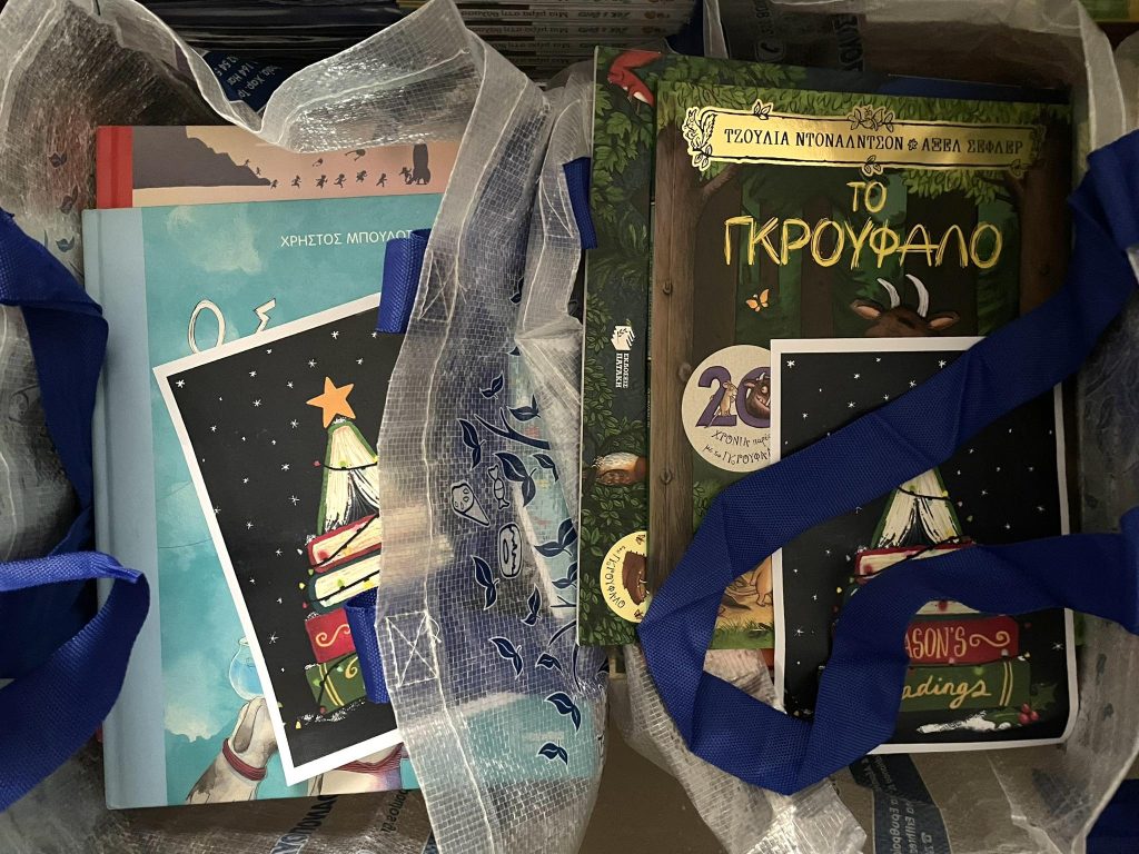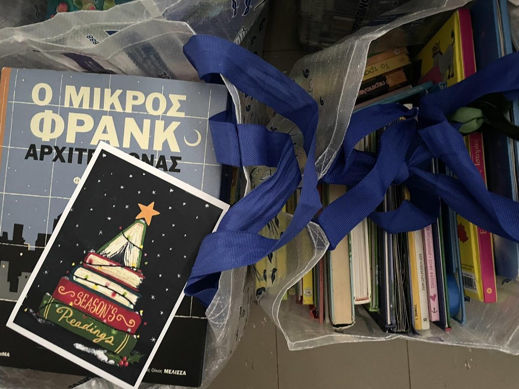 Με οδηγό το παράδειγμα των δύο μεγαλύτερων αδελφών της, έφτιαξαν αφίσα, μίλησαν στα παιδιά και κατάφεραν να συγκεντρώσουν στο πλαίσιο του CAS (Creative Action Service) project έναν μικρό θησαυρό: 463 βιβλία, προσεγμένα, αγαπημένα, ένα κι ένα.